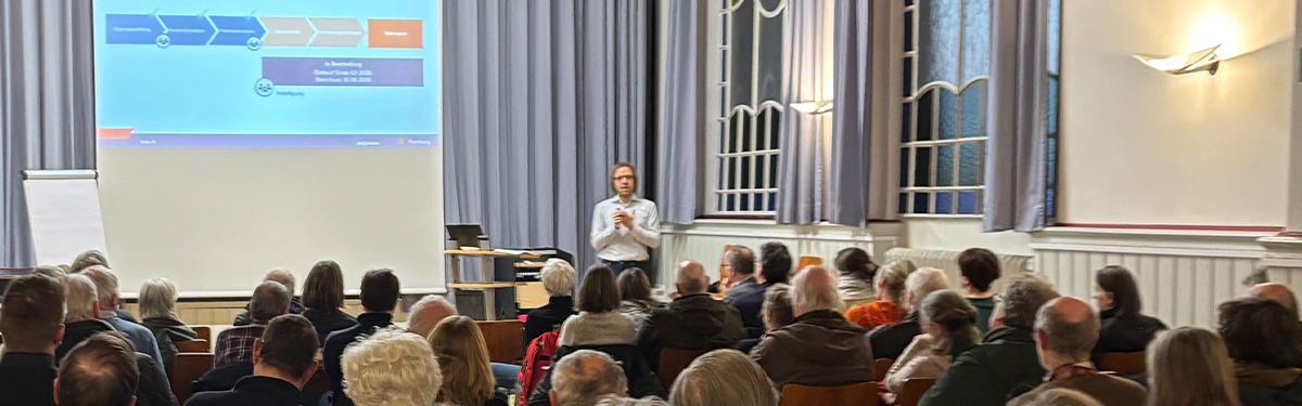 Am 16. Februar waren die Hamburger Energielotsen wieder mit einem kostenfreien Informationsabend vor Ort bei den Bürger:innen der Hansestadt, dieses Mal in Groß Flottbek. In Vorträgen wurde über gesetzliche Rahmenbedingungen sowie über Beratungs- und Fördermöglichkeiten zur energetischen Gebäudemodernisierung informiert. Gemeinsam mit Vertretern der Umweltbehörde (BUKEA) wurde der Entwurf des Wärmeplans der Stadt vorgestellt. Anschließend hatten die gut 60 Teilnehmenden die Möglichkeit individuelle Fragen zu stellen und auch Beratungstermine mit den Hamburger Energielotsen zu vereinbaren. Der nächste Vor-Ort-Abend ist für den 09. April 2026 in Eidelstedt geplant.