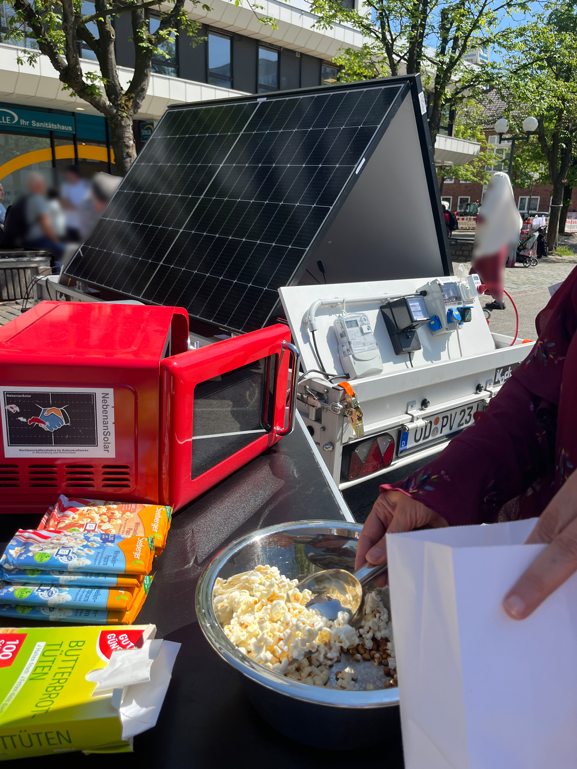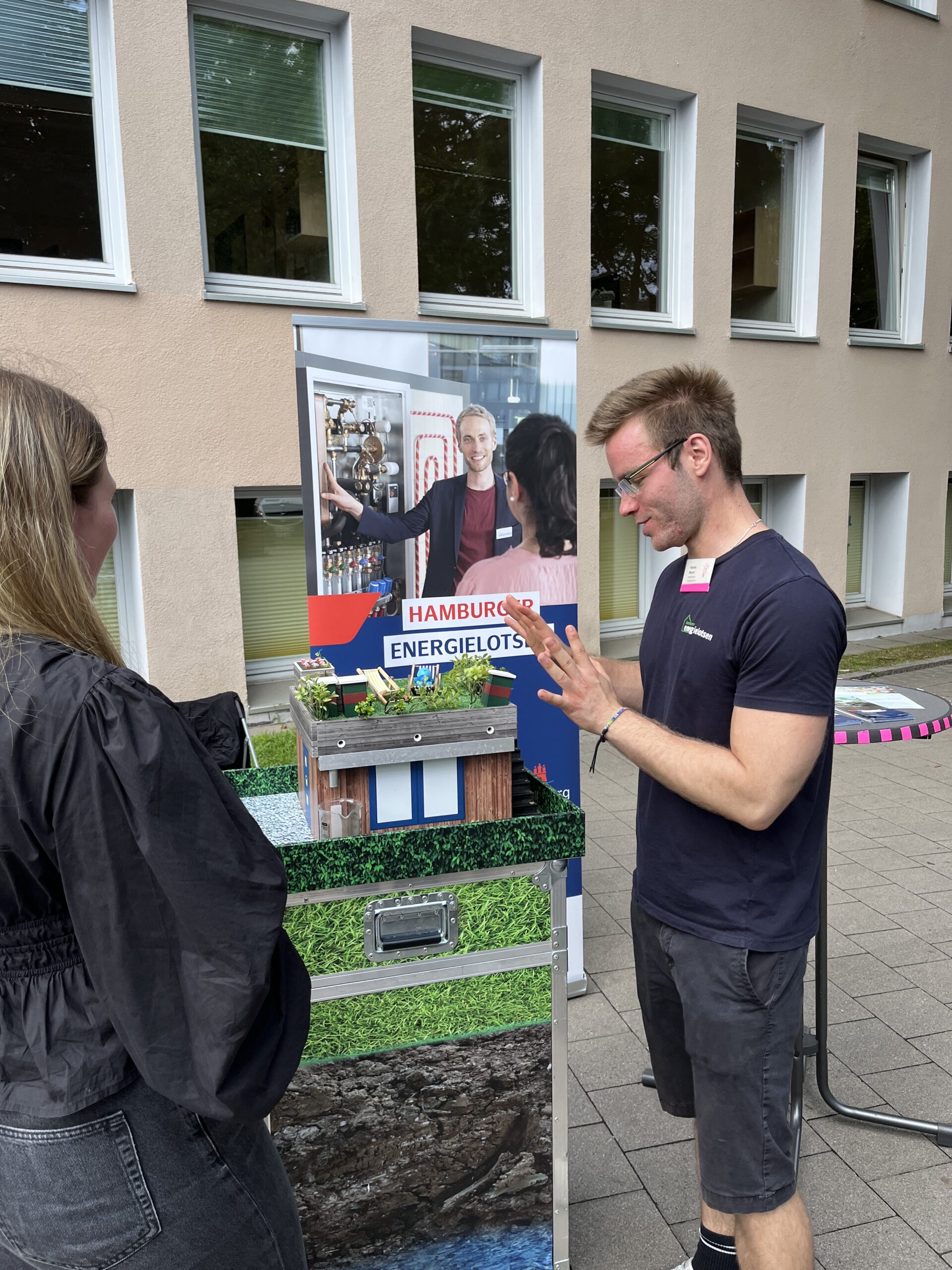 Unter dem Motto „Billstedt bewegt was“ fanden von Frühjahr bis Herbst 2025 kostenfreie Aktionstage rund um die Themen Energiesparen, Extremwetterschutz, Mobilität & Ressourcen, Wärmeversorgung und Klimaschutz im RISE-Gebiet Billstedt-Zentrum statt. An vier Aktionstagen konnten die Billstedter:innen sich über eine eigene Solaranlage informieren, Klimaanpassung bei Experimenten selbst erleben, Tipps zur Modernisierung erhalten und bei vor Ort gekochtem Essen aus geretteten Lebensmitteln zum Thema Mobilität in den Austausch kommen und Fahrräder testen. Für Kinder und Erwachsene gab es Gewinnspiele, kleine Wissensquizzes und vor allem ganz viel Beratung vor Ort auf dem Marktplatz und im Billstedt Center.