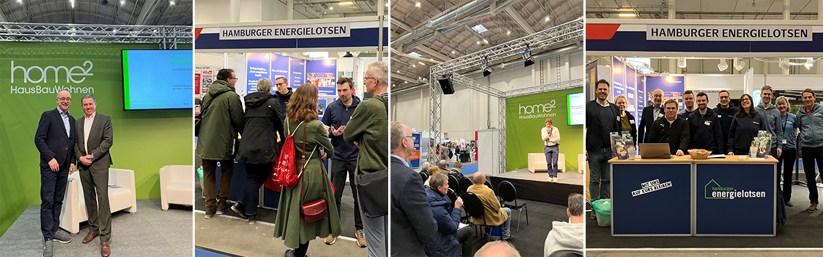 Auch in diesem Jahr zog es vom 23. bis 25. Januar wieder zahlreiche Besucher:innen in die Halle 4 der Hamburg Messe, wo die jährliche Messe rund um das Bauen und Modernisieren stattfand. Besonders gefragt waren Informationen zu Wärmepumpen und Photovoltaik – von technischen Umsetzungsmöglichkeiten bis hin zu den vielfältigen Hamburger Förderprogrammen. Großen Zuspruch fand auch die Grüne Bühne, organisiert von der ZEBAU GmbH und moderiert von Peter-M. Friemert. Dort gaben unter anderem die Hamburger Energielotsen wertvolle Tipps zur energetischen Modernisierung. Direkt neben der Grünen Bühne bot der Stand der Hamburger Energielotsen erneut die Möglichkeit, sich kostenfrei und unabhängig zur Modernisierung der eigenen Immobilie und zu Klimaanpassungsmaßnahmen beraten zu lassen.